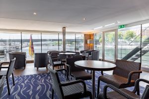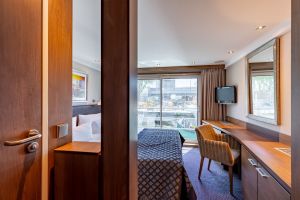 Средна палуба има 30 каюти с панорамни френски прозорци