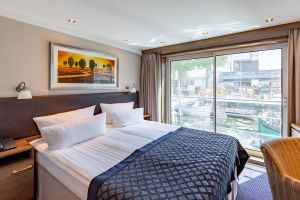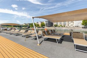 Горна палуба има 24 каюти и 4 суити с панорамни френски прозорци.