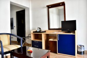 Всички стаи са оборудвани с климатик, телефон, телевизор, сет за кафе и чай, сейф, мини бар, Wi-Fi интернет (безплатно), баня с душ/вана, сешоар, тоалетни принадлежности, балкон/тераса с гледка градина/басейн/море. Почистване на стаите - вески ден, смяна на спално бельо - 2 пъти седмично.