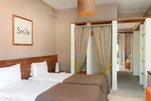 Хотелът разполага с общо 50 стаи, от които 32 Standard room (24 м2), 15 Family room (2 спални, 1 баня - 33 м2). Всички стаи са оборудвани с климатик, телевизор, телефон, баня с душ, сешоар, сет за кафе/чай, мини-бар, сейф. Почистване на стаите и смяна на кърпите - всеки ден, смяна на спалното бельо - 2 пъти седмично. Светли и модерни стаи със свежи оранжеви нюанси, с минималистичен дизайн, предлагащи комфортен престой.