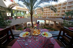 Основен ресторант, 3 а-ла-карт ресторанта (италиански - 1 посещение седмично, безплатно сет меню с предварителна резервация), рибен (платен), грил до басейна (платен за обяд, безплатен снакс), пица снек бар (платен), 6 бара (3 платени), 2 открити басейна (1 отопляем през зимата), СПА център, конферентна зала, магазини.