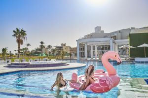 Намира се на 10 км. от летище Хургада, на 14 км. от центъра на Хургада, на брега на морето. Хотелът е с концепция ADULTS ONLY – настаняване на деца под 16 г. не е позволено.