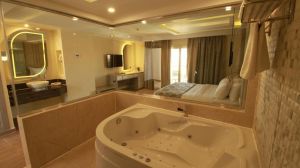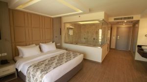 Приблизителна площ на стаята - около 28-32 кв.м. Разполага с телефон, сателитна телевизия, сешоар, сейф, мини бар - срещу допълнително заплащане, електрическа кана с чай и кафе, климатик, баня с тоалетна, балкон или тераса.