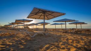 - Шезлонги и чадъри около басейна и на плажа
