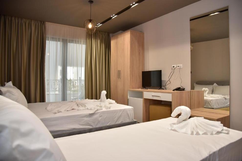 Хотелът посреща гостите си в комфортно обзаведени, светли стаи, които разполагат с плосък телевизор, гардероб, баня, сешоар, биде, балкон.