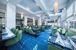 На разположение на гостите са ресторант, бар и кафене с изглед към брега.