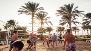 Desert Rose 5* разполага със собствен девствен пясъчен плаж с дължина от 1км, с 40 000 м² природна лагуна със златист пясък. Хотелът предлага на своите клиенти идеална атмосфера за забавления или просто да се насладят на прекрасния ненадминат климат на Червено море. Хотелът разполага с 4 плувни басейна, 1 с олимпийски размери, голям плувен басейн с палуби за слънчеви бани и бар край него, отопляем семеен плувен басейн и детски плувен басейн, специализиран за бебета и малки деца със собствен мини душ и мини столове. Като допълнение Аквапаркът предлага още и 6 водни пързалки.