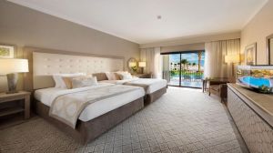 Супериорните стаи са с размер 46 м2 и предлагат максимално настаняване за двама възрастни, докато в делукс стаите с размер 58 м2 могат да бъдат настанявани до двама възрастни с две деца. Гостите могат да избират между стаи с гледка градина, гледка басейн, частична гледка море, както и Swip-up стаи с директен достъп до басейна от терасата на стаята. За клиентите, желаещи ексклузивно настаняване, се предлагат апартаменти Executive с размер 92 м2, Deluxe с размер 110 м2 и Royal с размер 141 м2. Луксозните вили на два етажа, с размер от 216 м2, са подходящ избор за големи семейства и компании, тъй като предлагат настаняване за до 4 възрастни с 3 деца.