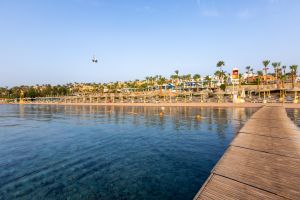 Собствен, пясъчен и коралов с дължина 300 м, риф и понтон. Чадъри и шезлонги на плажа и при басейна - безплатно. Плажни кърпи - безплатно.