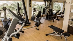Има фитнес център и един басейн с бар.
