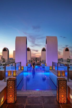Основен ресторантa, 4 а-ла-карт ресторанта, Rooftop ресторант, 5 бара, 7 басейна (отопляеми, основен открит със система Lazy River с дължина 400 м), закрит басейн (отопляем с морска вода), аквапарк със 6 водни пързалки, голф игрищe, тенис корт, анимация, СПА център, магазини, паркинг, сук (традиционен пазар).