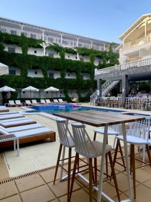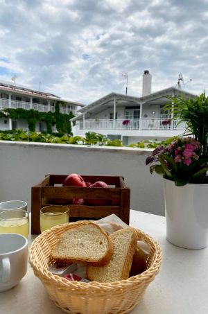 Хотелът се намира в оживеното градче Ханиоти, на 150 м. от плажа и на 500 м. от центъра, разстояние до Солун 100 км.