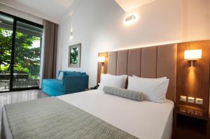 Apartment 2-Bedrooms (~ 44-48 кв.м) Намира се на приземния етаж (приземен етаж). Дневна с кухня, 2 отделни спални, двойно легло и 2 единични легла.