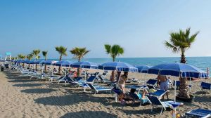 Плажната ивица се разпростира на 340 м и се намира на 50м. oт селището. Достъпът до плажа е свободен, където за всяко помещение за настаняване има чадър и шезлонг.Кафенето, баните и душовете са в близост до плажа. Спасителите са на плажа по цял ден за безопасността на гостите.