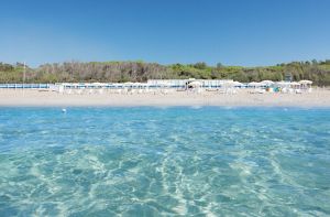 Собствен, пясъчен, на 600 м от хотела. Безплатен шатъл до плажа (по разписание). Чадъри и шезлонги на плажа се предоставят в периода от юни до септември. На първи и втори ред шезлонги и чадъри са срещу заплащане и изискват предварителна резервация, след трети ред са безплатни.