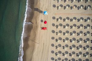 Собствен, пясъчен плаж на 250 метра от хотела (през борова гора). Чадъри и шезлонги на плажа се предоставят в периода от юни до септември. На първи и втори ред шезлонги и чадъри са срещу заплащане и изискват предварителна резервация, след трети ред са безплатни.