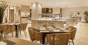 Хотелът разполага с ресторант за закуска - "Wake up" , ресторант за обяд и вечеря "Umaniko" и бар "Cheers". Предлага и голям басейн с тераса и гледка към морето и променадата.
