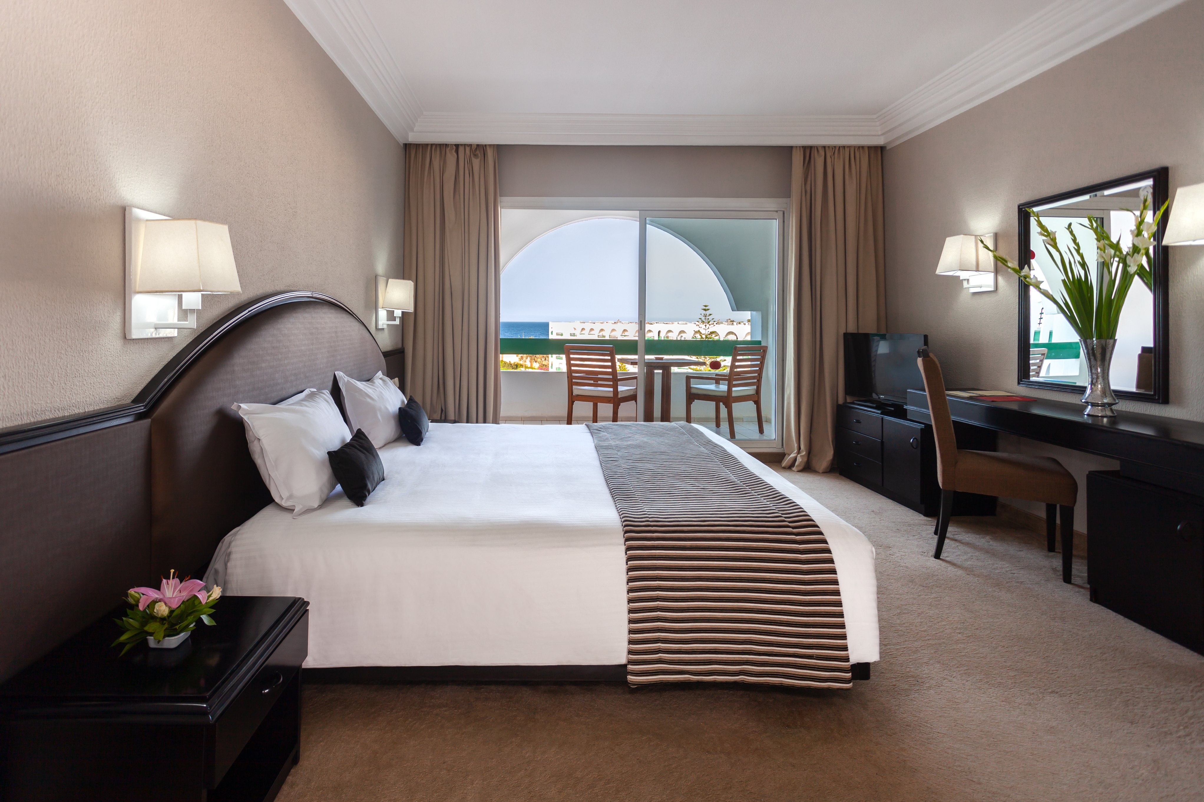 Основен ресторант Mimosa, а ла карт ресторант El Fell (платен, 1 безплатно посещения на престой, след предварителна резервация), барбекю ресторант на плажа, лоби бар Camelia, бар Dahlia (срещу заплащане), бар басейн, бар на плажа, Таласо център, открит басейн, закрит басейн, закрит басейн с морска вода в Таласо центъра (срещу заплащане), анимация, денонощна рецепция, 3 конферентни зали, обмяна на валута, магазин.