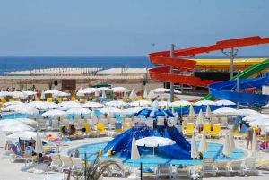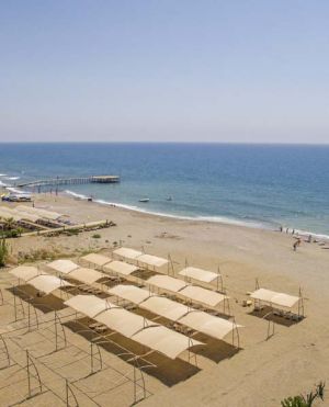 Собствен, пясъчно-чакълест плаж. Безплатно ползване на чадъри, шезлонги, матраци на плажа и при басейните. Плажни хавлии - с депозит.