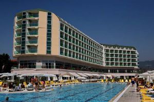 Основен ресторант, 3 Ала Карт ресторанта (турски, рибен, барбекю - с предварителбно записване, за 1 седмичен престой се полага 1 посещение - безплатно), 6 бара, 2 открити и 2 закрити басейна, 1 конферентна зала, SPA център, магазини, фризьорски салон. За децата: детски басейн, мини клуб, анимация, детска площадка. Безплатни услуги: сауна, турска баня, плажен волейбол, тенис на корт, тенис на маса, баскетбол, боулинг, безжичен интернет (на lobby). Платени услуги: масаж, игрални автомати, лекар, водни спортове. Плаж: Собствен - пясъчен. Чадъри, шезлонги и матраци на плажа и басейна - безплатно.