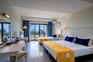 Хотелът разполага с общо 234 стаи, разположени в една 6-етажна основна сграда Main Building, от които 151 стандартни стаи Standard room land view (изглед суша - 30 м2), 40 стандартни стаи Standard room sea view (изглед море - 30 м2), 10 стандартни стаи Bunkbed room (спалня + двуетажно легло - 30 м2), 31 фамилни стаи Family room (2 спални, 1 бяна– 35 м2), 2 стаи за инвалиди. Всички стаи са оборудвани с климатик, телефон, телевизор, баня с душ/вана, минибар (вода и безалкохолни напитки – безплатно, само при пристигане), сет за кафе/чай, сейф (безплатен).
