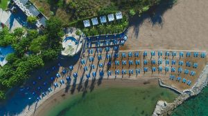 Собствен, пясъчно-чакълест. Чадъри и шезлонги на плажа и при басейна - безплатно. Плажни кърпи – срещу депозит.