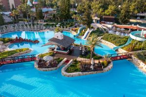 Основен ресторант, 3 а-ла-карт ресторанта 4 бара, 4 открити басейна, 1 детски басейн, водни пързалки за деца и възрастни, детска площадка, мини клуб (4-12г.).