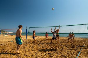 ПЛАЖ: Собствен, пясъчен, удостоен със сертификат Син Флаг за изключително чиста вода. На басейна и на плажа: чадъри, шезлонги, матраци – безплатно. Плажни хавлии: безплатно.