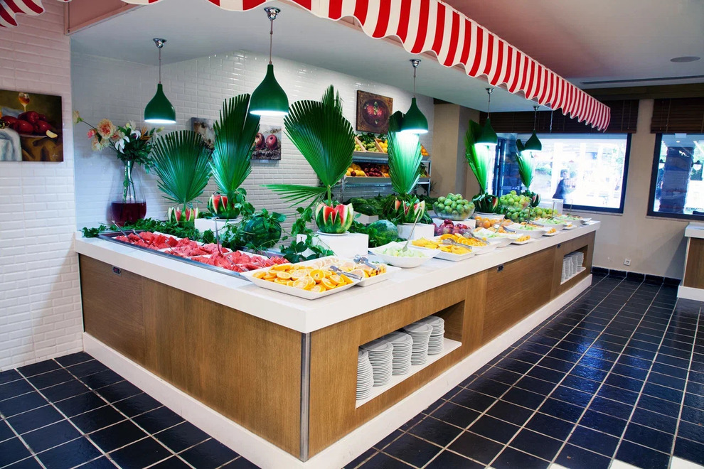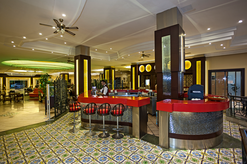 Хотелът има основен ресторант (има диетична хранадиетично меню), 3 ресторанти a la carte (турски, италиански, рибен, с предварително записване, платено). В 4-те бара (един от тях работи 24 часа) се поднасят разнообразни напитки.