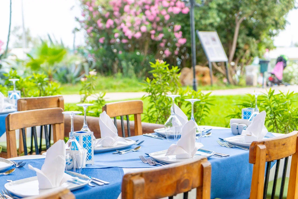 Хотелът разполага със собствен пясъчно-чакълест плаж. За удобство на своите гости има и открити плувни басейни, заобиколени с палми и шезлонги, както и покрит плувен басейн. Чадъри, шезлонги, матраци, плажни хавлии на плажа и при басейна се предлагат безплатно.