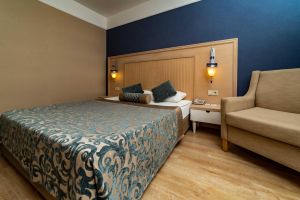 Хотелът разполага с общо 300 стаи, всички оборудвани с климатик, телевизор, телефон, баня с душ/вана, сешоар, минибар, сейф (платен). Почистване на стаите - всеки ден, смяна на спалното бельо и кърпите – 2 пъти в седмицата.