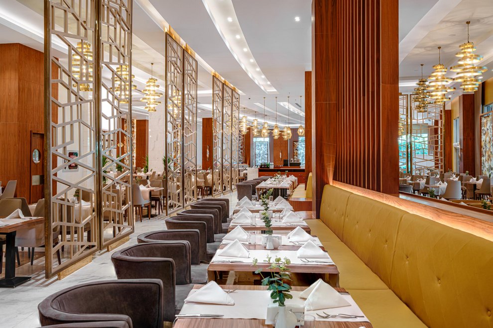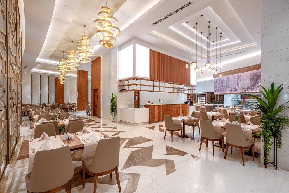 Хотелът разполага с основен ресторант и 4 а`ла карт ресторанта: Mozaik ресторант - средиземноморска кухня и рибен, османски ресторант, Sushi ресторант, Стек хаус ресторант. Освежаващи напитки и закуски се поднасят в 9 бара: Mocca Bar (работи денонощно), лоби бар, бар на плажа, бар при басейна, Бар у Fruit, Бар Mixology, бар на кея, Аква бар и диско бар.
