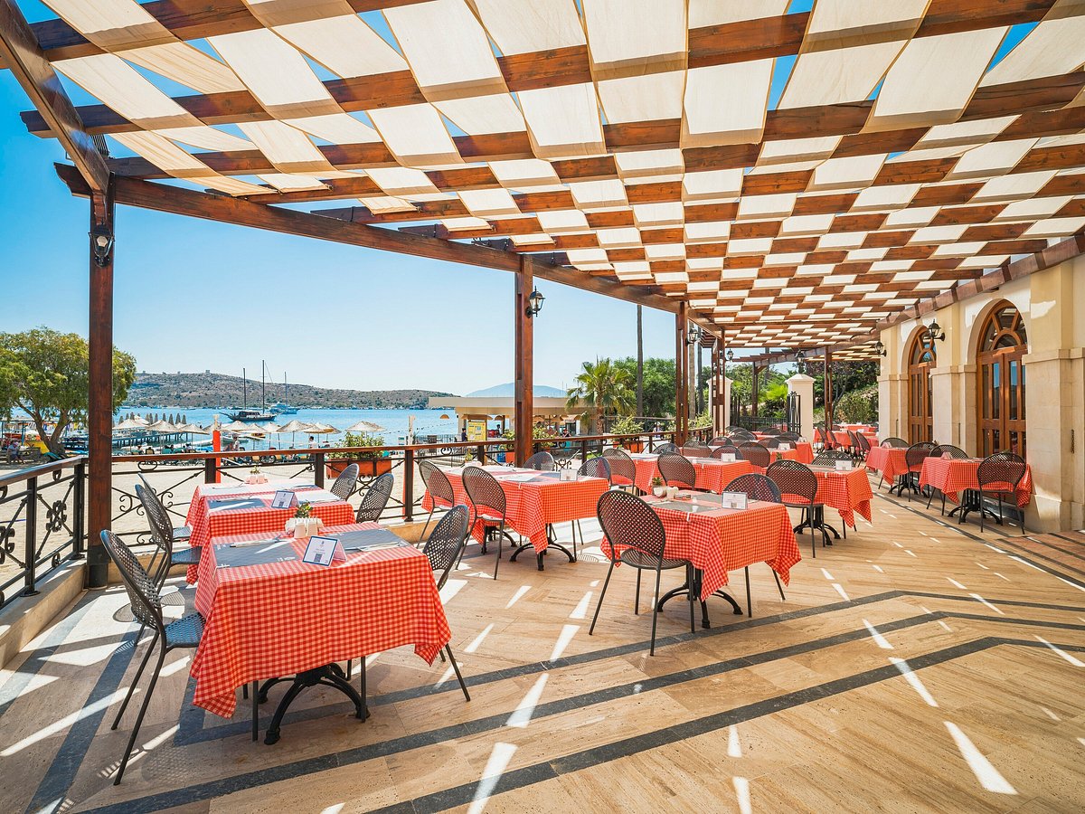 Намира се на 37 км от летище Бодрум, на 4 км от центъра на Бодрум, в района на Гюмбет, на брега на морето. Построен 1999 г., на обща площ от 38 000 м². Реновиран 2023 г.