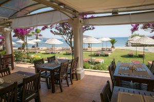 Собствен, пясъчно - чакълест. Чадъри, шезлонги на плажа и при басейна – безплатно.
