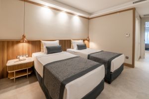 Стаи Land View Room (стандартни стаи с изглед суша - 24-30 м²), Sea View Room (станартни стаи с изглед море - 24-30 м²), Large Room (спалня със зона за сядане, баня - 37 м²), Family Room (2 спални, 1 баня - 41 м²).
