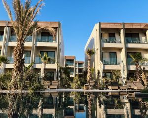 Хотелът разполага с общо 120 стаи, разположени в 2-етажни блокчета. Стаи Superior Room (спалня, баня, без тераса - 29 м²), Deluxe room garden view (спалня, баня, тераса, с изгглед градина - 34 м²), Deluxe Room Sea View (спалня, баня, тераса, с изгглед море - 34 м²), Suite Room (1 спалня, 1 хол, 1 баня, тераса - 63 м²), Jacuzzi suite room (1 спалня, 1 хол, 1 баня, джакузи, тераса - 63 м²), Family Room (2 спални, 1 баня - 63 м²).