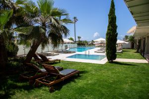 Чадъри, шезлонги, матраци и плажни кърпи на плажа и при басейна - безплатно.