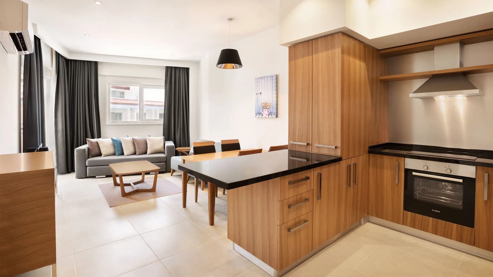 Хотелът разполога с общо 265 стаи, разположени в 4 блока: Superior Room (34 м²), Junior Suite Room (1 спалня, хол - 53 м²), Family Suite Room (2 спални, хол - 71 м²). Всички стаи са оборудвани с климатик, телевизор, телефон, баня с душ или вана, сешоар, сет за чай/кафе, минибар (безплатно еднократно зареждане с вода и безалкохолни напитки при настаняване), сейф (безплатен), балкон, Wi-Fi. Почистване на стаите – всеки ден, смяна на спалното бельо – 2 пъти в седмицата, смяна на кърпите – 3 пъти в седмицата.