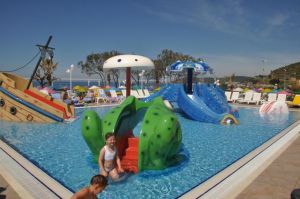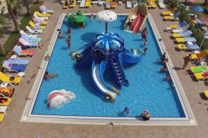 За децата: детски басейн, детски водни пързалки, мини клуб (4-12 г.), детска площадка, анимация.