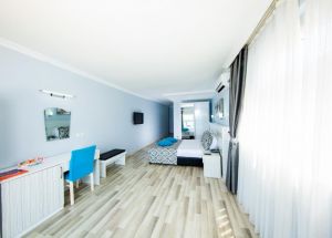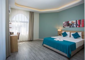 Разполага със 110 стаи, които са разположени в 5-етажна основна сграда Main bilding, от които 95 Standart room (18 м²) и 4 family room (две стаи с плъзгаща врата, баня и балкон, 30 м²), 10 deluxe room, 1 суит. Всички оборудвани с климатик, телевизор, баня с душ или вана, сешоар, минибар (платен), сет за чай/кафе, сейф (безплатен), балкон. По-голямата част от стаите имат невeроятна гледка към морето. Почистване на стаите - всеки ден. Смяна на спалното бельо и кърпите - 3 пъти в седмицата.