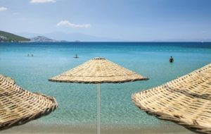 Собствен, пясъчен, притежаващ сертификат "Син флаг". Чадъри, шезлонги и матраци на плажа и при басейна – безплатно, плажни кърпи - срещу депозит.
