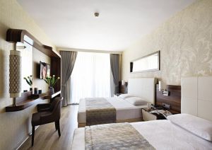Хотелът разполага общо с 170 стаи, от които Standart rooms (спалня и единично легло, 24 m2), Suite Rooms (спалня и всекидневна, 32 m2), Superior rooms. Всички стаи са оборудвани с климатик, телевизор, телефон, баня с душ, сешоар, мини бар (вода- безплатно, само при пристигане), сейф (безплатен), балкон. Почистване на стаите – всеки ден, смяна на спалното бельо и кърпите – 2 пъти в седмицата.