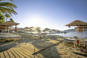Собствен, пясъчен – чадъри и шезлонги на плажа и при басейна – безплатно, плажни кърпи - безплатно.