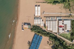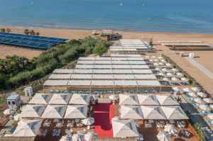 Собствена пясъчна плажна ивица с плавен преход на разстояние 400 метра от хотела. За удобство на гостите на хотела е предвиден безплатен шатъл бус до плажа. Безплатно ползване на чадъри и шезлонги на плажа и при басейна.