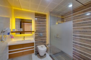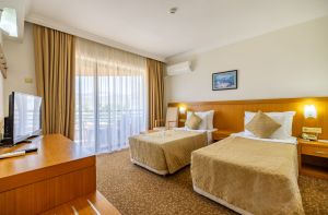 Всички стаи са оборудвани с климатик, телевизор, телефон, баня с душ/вана, сешоар, мини бар (платен), сейф (безплатен), балкон. Почистване на стаите - всеки ден, смяна на спалното бельо и кърпите - 2 пъти в седмицата.