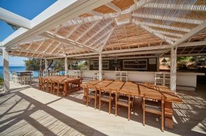 Собствен, пясъчно - чакълест, платформа. Чадъри, шезлонги и плажни кърпи на плажа и при басейна – безплатно.