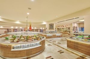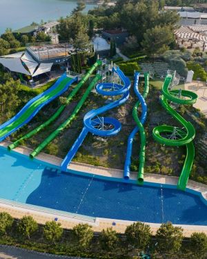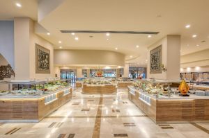 Основен ресторант PINA с диетичен, вегетариански и детски кът; 5 а-ла-карт ресторанта (турски MARDIN, гръцки MYLOS, средиземноморски VIRA, италиански PULCINELLA, тепаняки SAKURA - с предварителна резервация, Club Azure/ 4 снек ресторанта (Pina, Mylos, Vira, Sunrise); 12 бара (Sunset Lobby Bar, Sunris Bar, Vira Event Bar, Pool bar, Sisha Lounge, Mylos Bar, Sakura Bar, Pulcinella Bar, Club Azure/ Beach Bar, Disco Bar), Starbucks, сладкарница, 2 открити басейна, 1 закрит басейн, аква парк с 10 водни пързалки, амфитеатър, СПА център, дискотека, магазини, 9 конферентни зали, паркинг. На плажа има общо 16 кабани, които могат да се наемат срещу допълнително заплащане, с включен сервиз.
