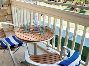 Собствен, пясъчен плаж с дължина 300 м, притежаващ ссертификат "Син флаг" и кей със 150 м дължина. Чадъри, шезлонги, матраци и плажни кърпи на плажа и при басейна - безплатно.