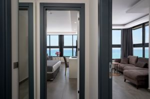Хотелът разполага с общо 214 стаи, разположени в 3 шестетажни корпуси, от които 185 Standard room (18-25 м2), 2 Handicapped room 25 m², 28 Family room (2 спални, 1 баня – 55 м2). Всички стаи са оборудвани с климатик, телевизор, телефон, баня с душ/вана, сешоар, минибар (срещу заплащане), сейф (срещу заплащане). Почистване на стаите всеки ден - смяна на спалното бельо и кърпите - 2 пъти в седмицата.