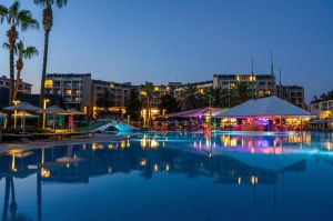 Основен ресторант, 4 а-ла-карт ресторанта - интернационален, турски, далекоизточен, средиземноморски (1 безплатно посещение на 1 от ресторантите при минимум 7 нощувки, с предварителна резервация – с изключение на интернационалния ресторант), станция за бургери и сандвичи, снек бар, сладкарница, 4 бара, диско бар, 2 открити и 1 закрит (отопляем) басейн, аквапарк, амфитеатър, СПА център, магазини, конферентнa залa, паркинг.